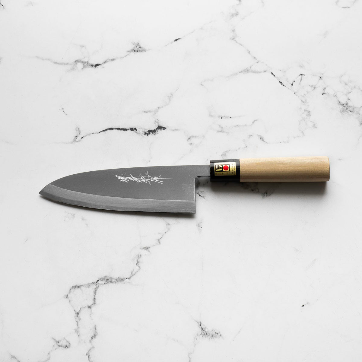The Deba knife, deeply rooted in Japanese culinary tradition, is a robust, single-bevel knife (sometimes double) primarily designed for fileting fish. Its thick, heavy blade effortlessly glides through fish bones and joints, while preserving delicate flesh. Ideal for seafood preparation, the Deba is a staple in Japanese kitchens for its precision and strength.