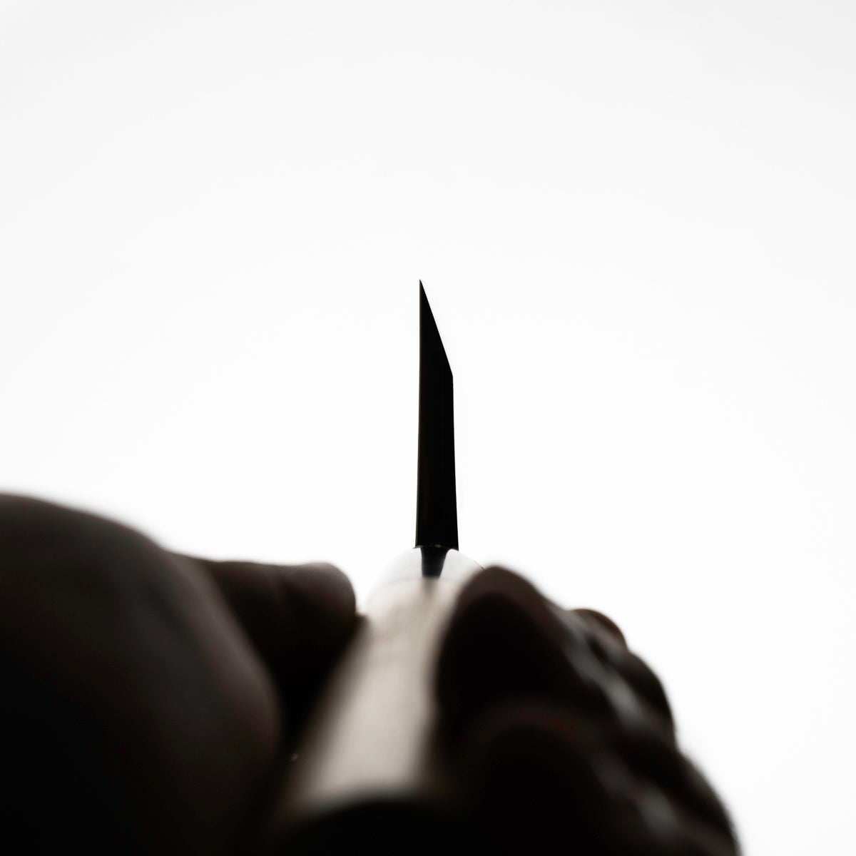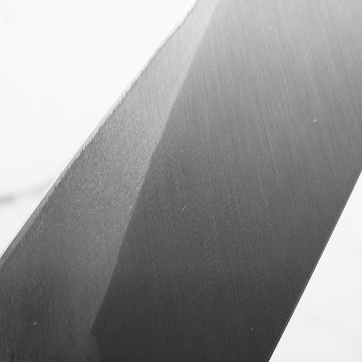 Japanese White Steel #2, a traditional high-carbon steel, is cherished for its purity and fine grain structure, enabling razor-sharp edges, at the cost of being reactive. It is one of the easiest steels to sharpen but cannot be left wet for even short periods otherwise rust spots can occur. If you’re fastidious in your knife maintenance, this knife steel can be extremely rewarding to use.
