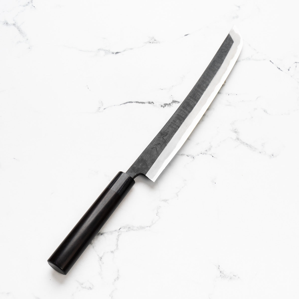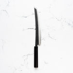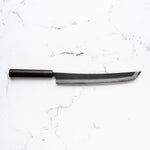 The Sakimaru knife is a specialized Japanese knife, often regarded as a variation of the traditional sashimi knife. It features a long, slender, and gracefully curved blade, designed for making precise, thin cuts of fish, particularly for sashimi. The Sakimaru's elongated shape allows for drawing long, uninterrupted slices, embodying the art of Japanese culinary techniques.