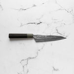 The Petty knife, a quintessential tool in Japanese cuisine, is a smaller utility knife used for precise, delicate tasks. Often considered a smaller sibling to the chef's knife, it excels in hand-held tasks like peeling, trimming, and intricate cutting. Its versatility makes it an essential for detailed culinary work.