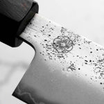 Japanese Ginsan steel, also known as Silver-3 or G3, is an underrated high-grade semi-stainless steel loved by many for being in the ‘goldilocks zone’ of knife steels. It holds a very respectable edge, but is effortless to sharpen. It is considered the semi-stainless version of White 2. It is the knife steel of choice for many home cooks and professional chefs alike.