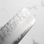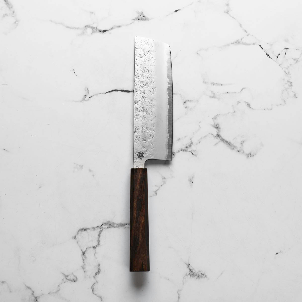 The Nakiri knife, revered in Japanese culinary traditions, is engineered for exceptional vegetable cutting. Featuring a distinct, straight-edged, and rectangular blade, it excels in creating uniform, precise cuts and aesthetic presentation. Its technical design ensures efficiency and precision, making it a valuable tool for both professional chefs and home cooks.