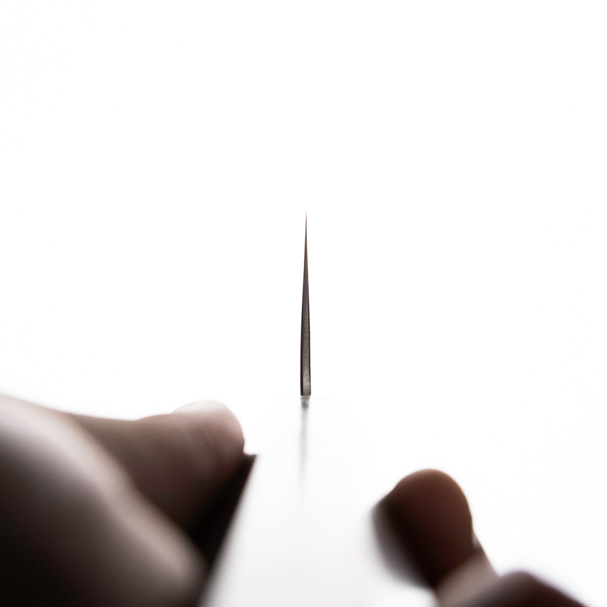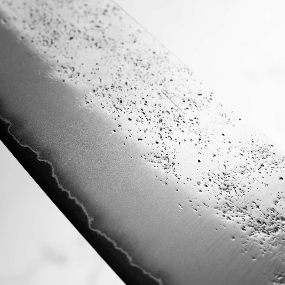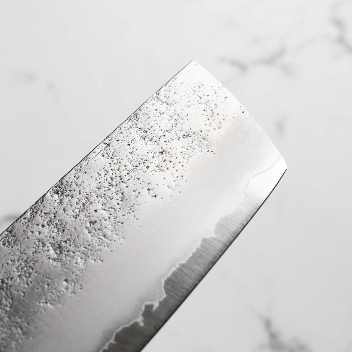 Japanese Ginsan steel, also known as Silver-3 or G3, is an underrated high-grade semi-stainless steel loved by many for being in the ‘goldilocks zone’ of knife steels. It holds a very respectable edge, but is effortless to sharpen. It is considered the semi-stainless version of White 2. It is the knife steel of choice for many home cooks and professional chefs alike.
