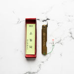 He named it “Higonokami Knife” because many of his customers were in Kumamoto area (formally Higo country), which turned out to dramatically increase his sales. The blades have gradually changed their shapes. Unlike single-edged knives, the double-edged blades (V-shaped cross section) were in those days considered common. The earlier blades had a sharper tip (shape of a bamboo leaf), but now they have square shapes. The sheaths had a vertically folding style and a cross folding style, now the vertical one has to be custom made.