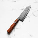 The Bunka knife, a versatile and traditional Japanese kitchen tool, features a distinctive, angular tip and a wide blade. It's designed for precision tasks like slicing, dicing, and chopping. Ideal for handling vegetables, meat, and fish, the Bunka is a multifunctional knife celebrated for its utility and unique aesthetic.