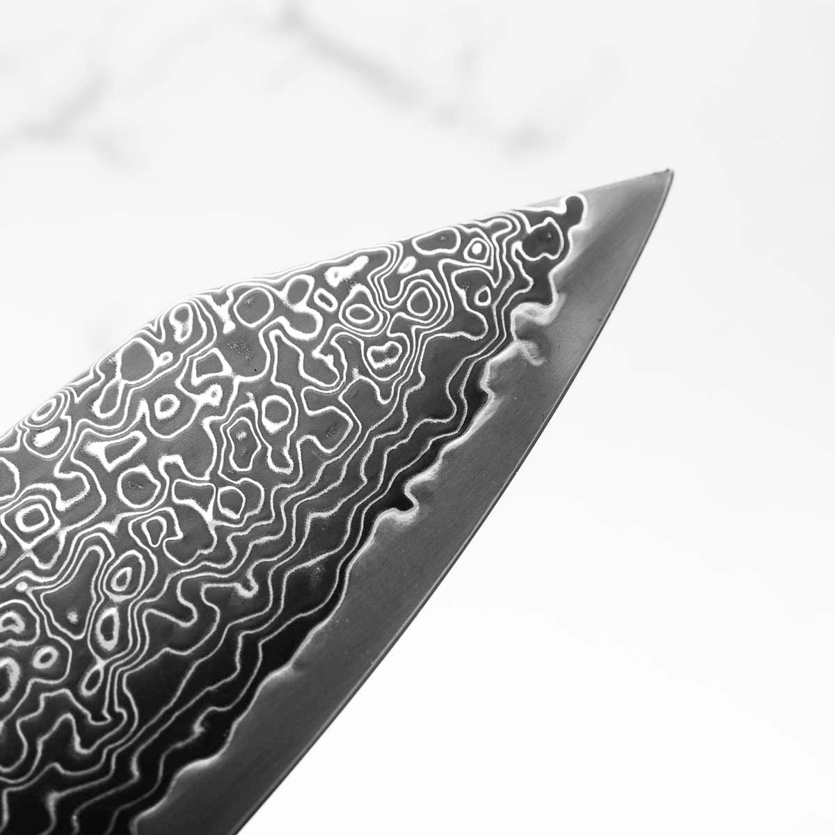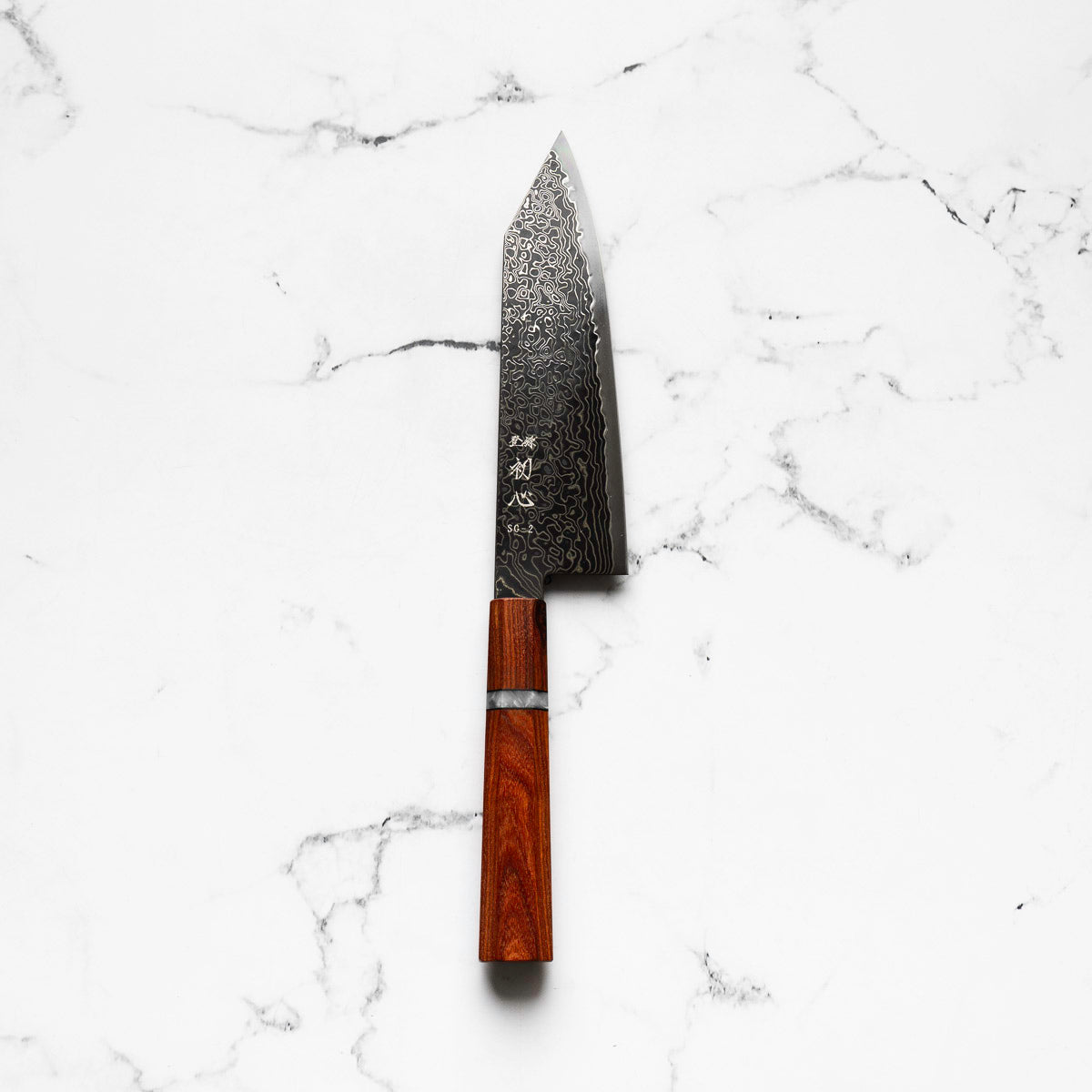 Japanese SG2, also known as R2 steel, is a high-end, powdered metallurgy stainless steel and one of the finest knife-making steels available in Japan. It is a favourite of many for its exceptional hardness and edge retention. Its fine, uniform grain structure enables razor-sharp edges, all the while holding an edge for much longer than Carbon steel knives, without needing to be concerned about rust appearing.