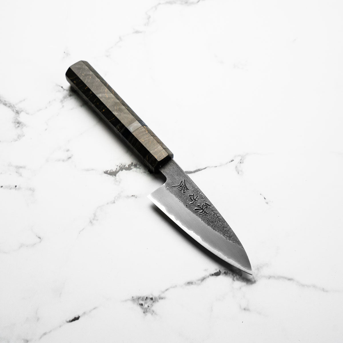 Mutsumi Hinoura Ajikataya White 2 SS Clad Paring 90mm - Dark Maple