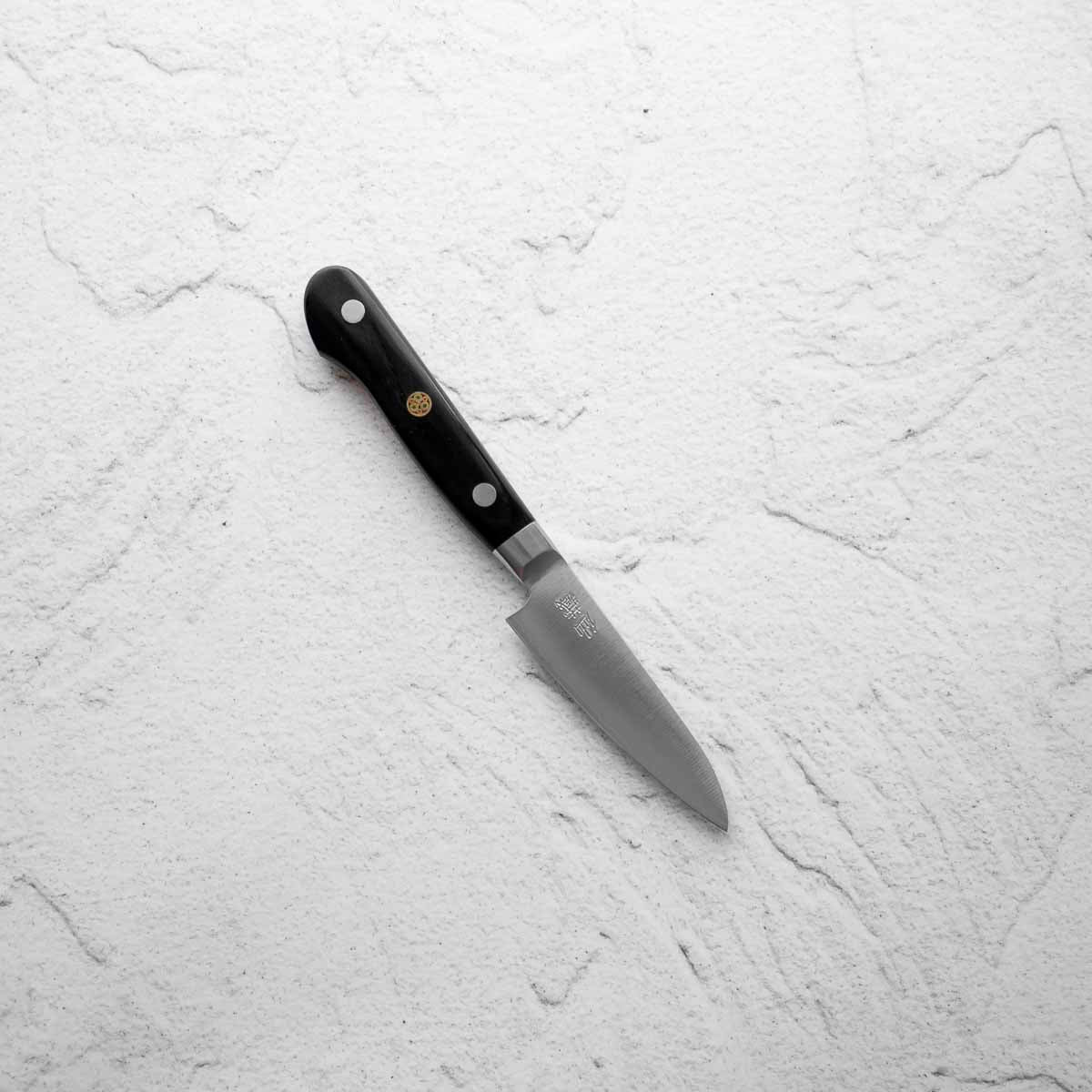 A paring knife, sometimes also known as a petty knife, is a small yet versatile tool, ideal for precise culinary tasks. Traditionally used for peeling, shaping, and delicate cutting, its compact size and sharp edge allow for meticulous control, making it essential for detailed work in fruits, vegetables, and garnishes.
