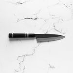 Mutsumi Hinoura Ajikataya White 2 SS Clad Petty 135mm - Ebony w/ Double Black Horn (3 rings)