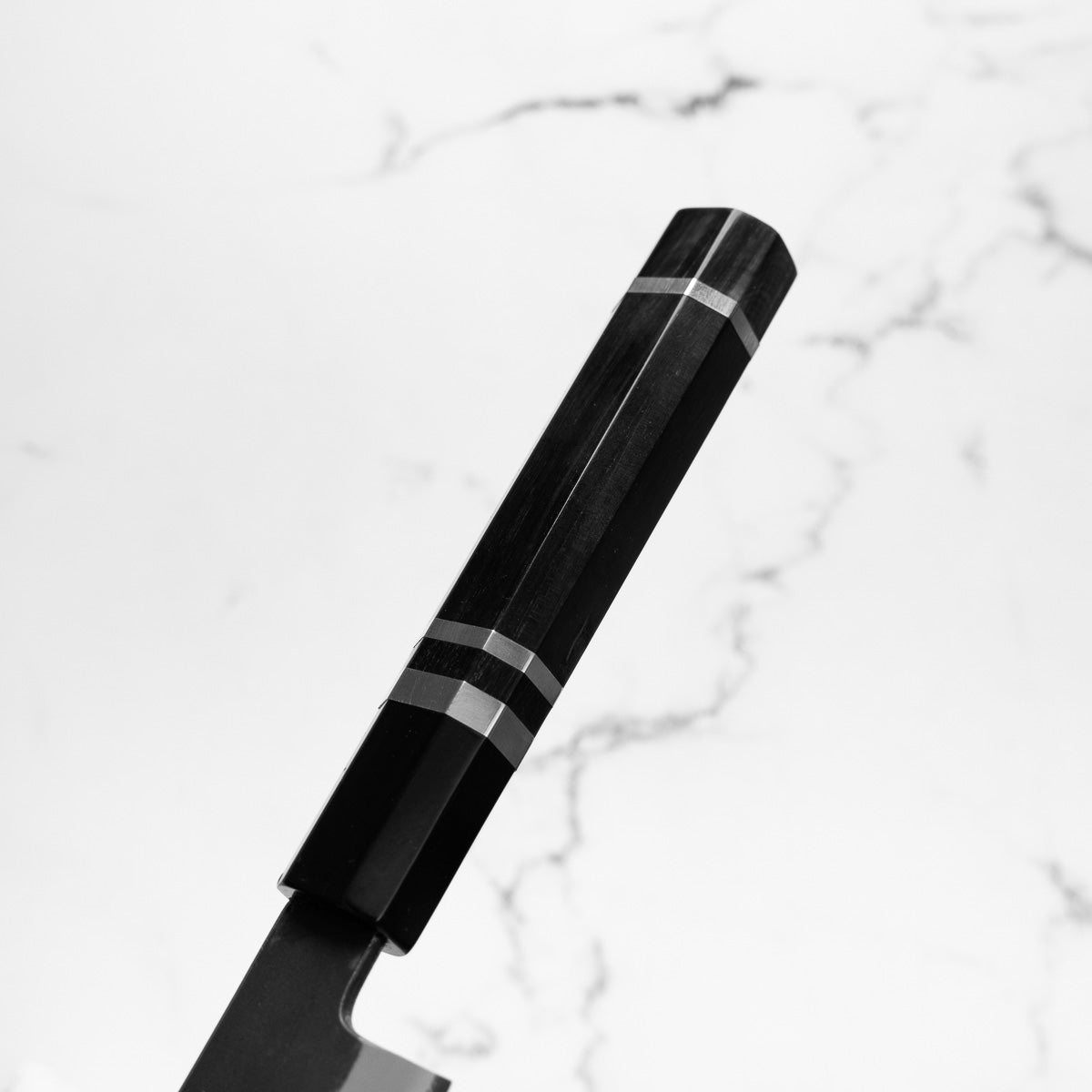 Japanese White Steel #2, a traditional high-carbon steel, is cherished for its purity and fine grain structure, enabling razor-sharp edges, at the cost of being reactive. It is one of the easiest steels to sharpen, but cannot be left wet for even short periods otherwise rust spots can occur. If you’re fastidious in your knife maintenance, this knife steel can be extremely rewarding to use.