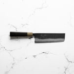 The Nakiri knife, revered in Japanese culinary traditions, is engineered for exceptional vegetable cutting. Featuring a distinct, straight-edged, and rectangular blade, it excels in creating uniform, precise cuts and aesthetic presentation. Its technical design ensures efficiency and precision, making it a valuable tool for both professional chefs and home cooks.