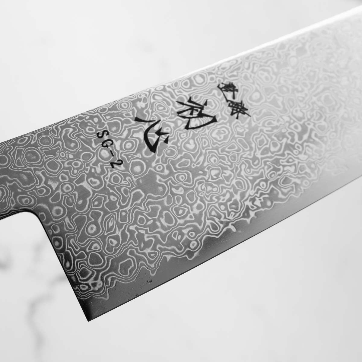 Japanese SG2, also known as R2 steel, is a high-end, powdered metallurgy stainless steel and one of the finest knife-making steels available in Japan. It is a favourite of many for its exceptional hardness and edge retention. Its fine, uniform grain structure enables razor-sharp edges, all the while holding an edge for much longer than Carbon steel knives, without needing to be concerned about rust appearing.