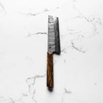The Nakiri knife, revered in Japanese culinary traditions, is engineered for exceptional vegetable cutting. Featuring a distinct, straight-edged, and rectangular blade, it excels in creating uniform, precise cuts and aesthetic presentation. Its technical design ensures efficiency and precision, making it a valuable tool for both professional chefs and home cooks.