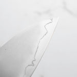 Japanese Ginsan steel, also known as Silver-3 or G3, is an underrated high-grade semi-stainless steel loved by many for being in the ‘goldilocks zone’ of knife steels. It holds a very respectable edge, but is effortless to sharpen. It is considered the semi-stainless version of White 2. It is the knife steel of choice for many home cooks and professional chefs alike.