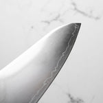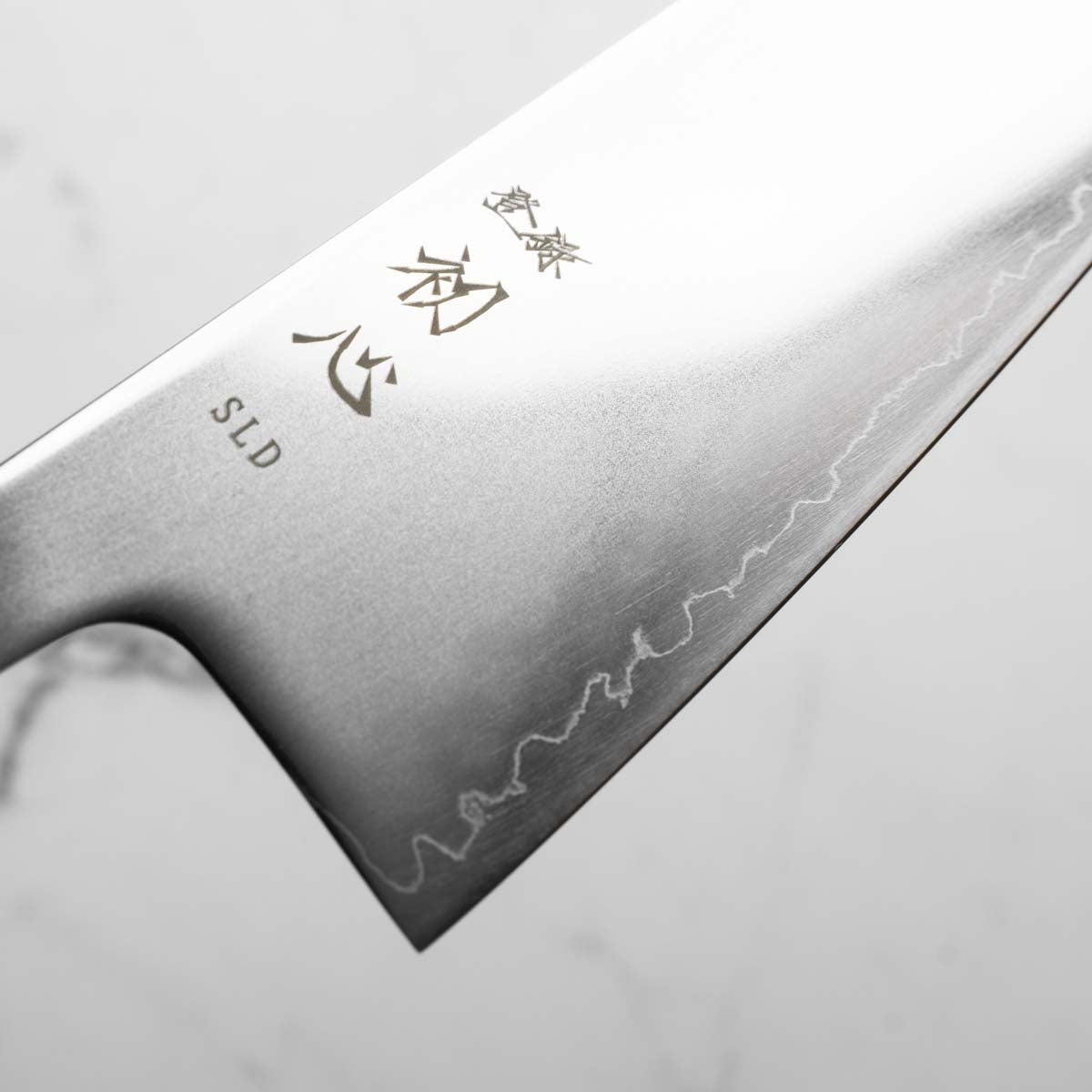 Japanese SLD steel is a semi-stainless steel crafted through advanced metallurgy. It is used often in Sanjo knives, has a non-chippy edge and is extremely tough. This high-carbon steel, enriched with chromium and molybdenum, offers excellent performance, but be mindful not to leave it wet for extended periods.