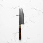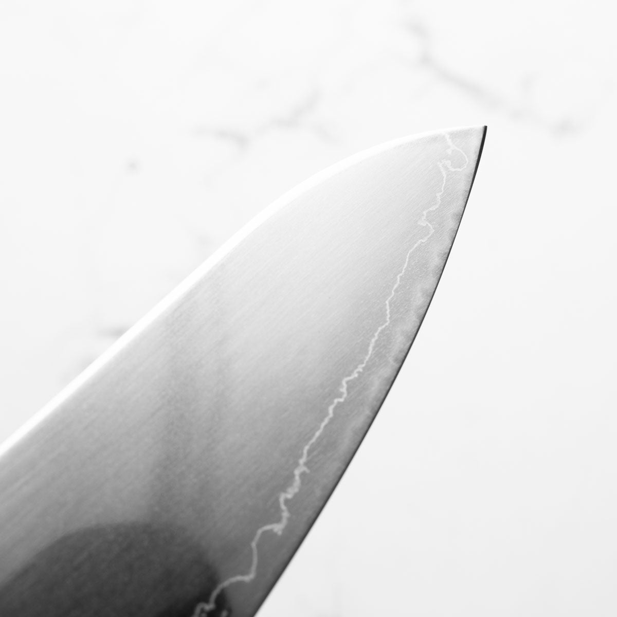 Japanese SLD steel is a semi-stainless steel crafted through advanced metallurgy. It is used often in Sanjo knives, has a non-chippy edge and is extremely tough. This high-carbon steel, enriched with chromium and molybdenum, offers excellent performance, but be mindful not to leave it wet for extended periods.