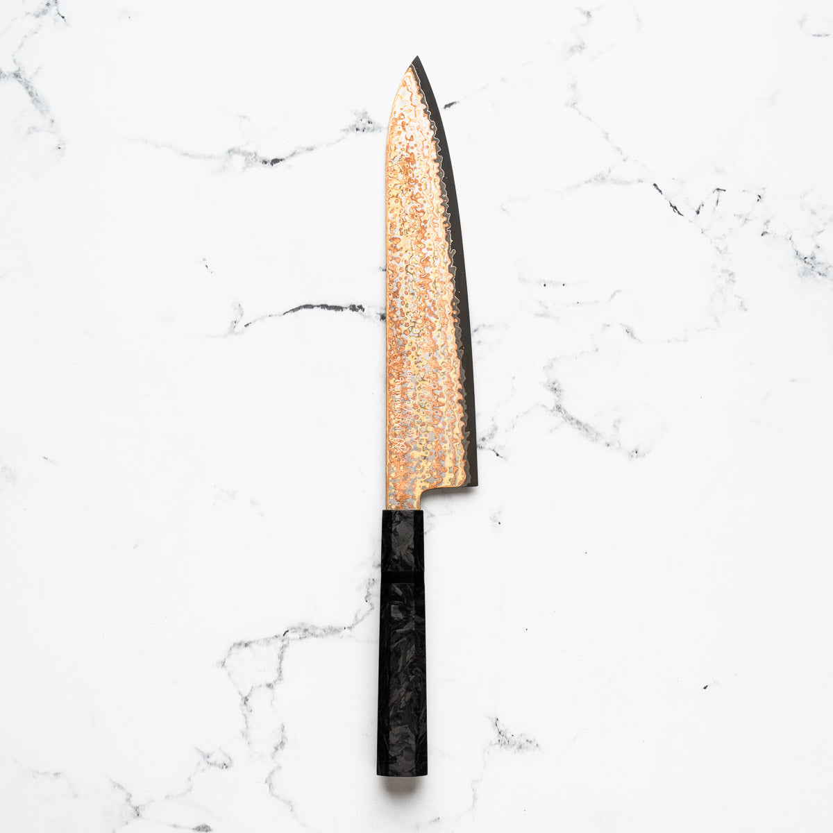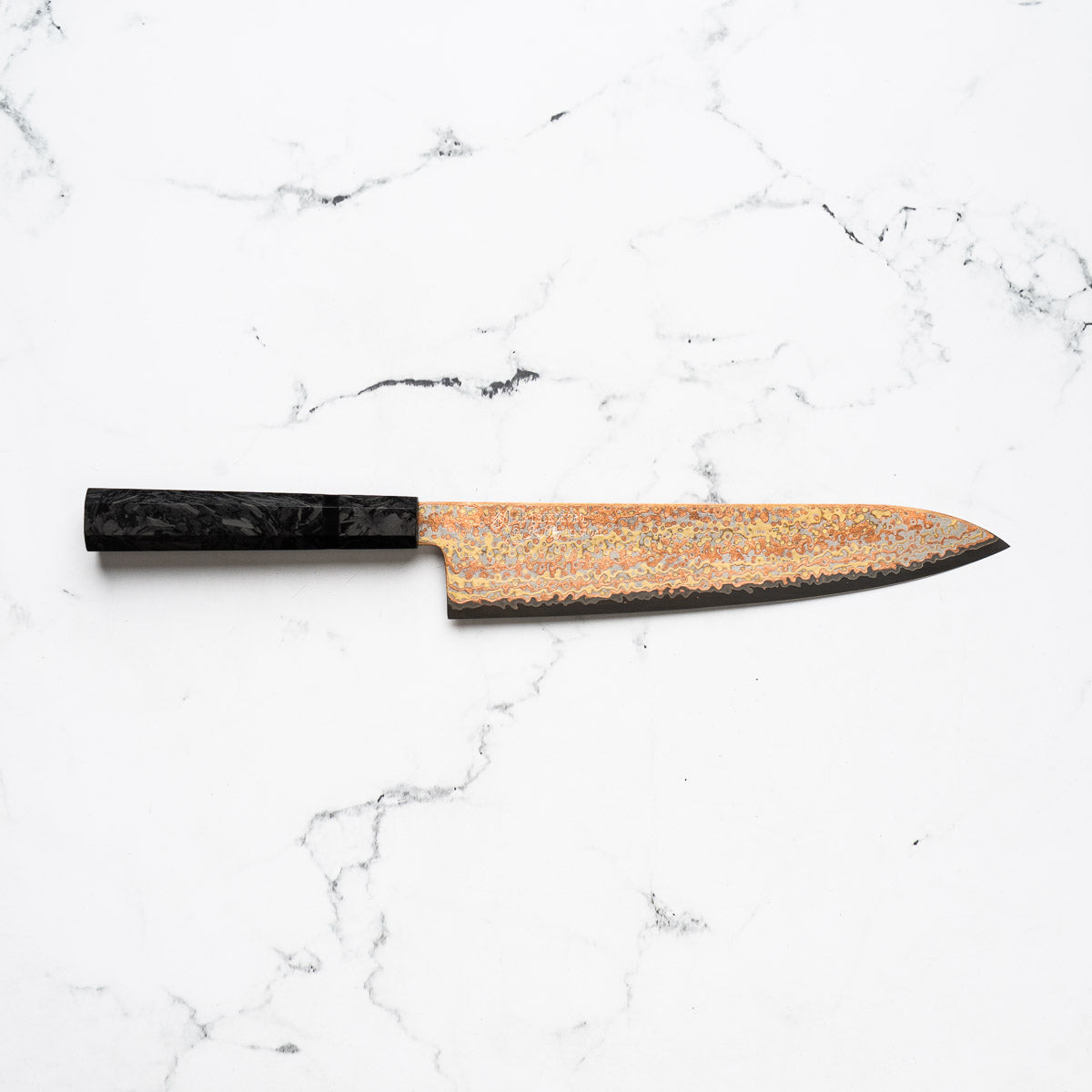 Hatsukokoro Hinotori V-Toku 2 Rainbow Damascus Gyuto 240mm - Dark Carbon Fibre
