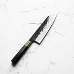 The Petty knife, a quintessential tool in Japanese cuisine, is a smaller utility knife used for precise, delicate tasks. Often considered a smaller sibling to the chef's knife, it excels in hand-held tasks like peeling, trimming, and intricate cutting. Its versatility makes it an essential for detailed culinary work.