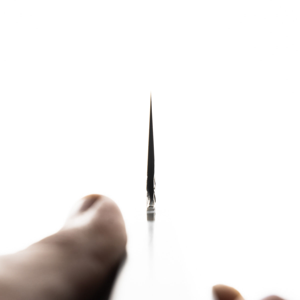 Embracing a rapid rise in popularity for his unique designs and committment to striving for perfection, Shunsuke Manaka is the man behind Kisuke knives. From the sketchbook to the kitchen, he is the sole craftsman behind the entire knifemaking process. Shunsuke engineers these knives using a process known as Warikomi, whereby a glowing hot piece of steel is split, and the core steel is wedged in and forged together. The split steel becomes the outer layers, and the core steel is exposed at the edge. This process produces a stronger, tougher more durable blade.