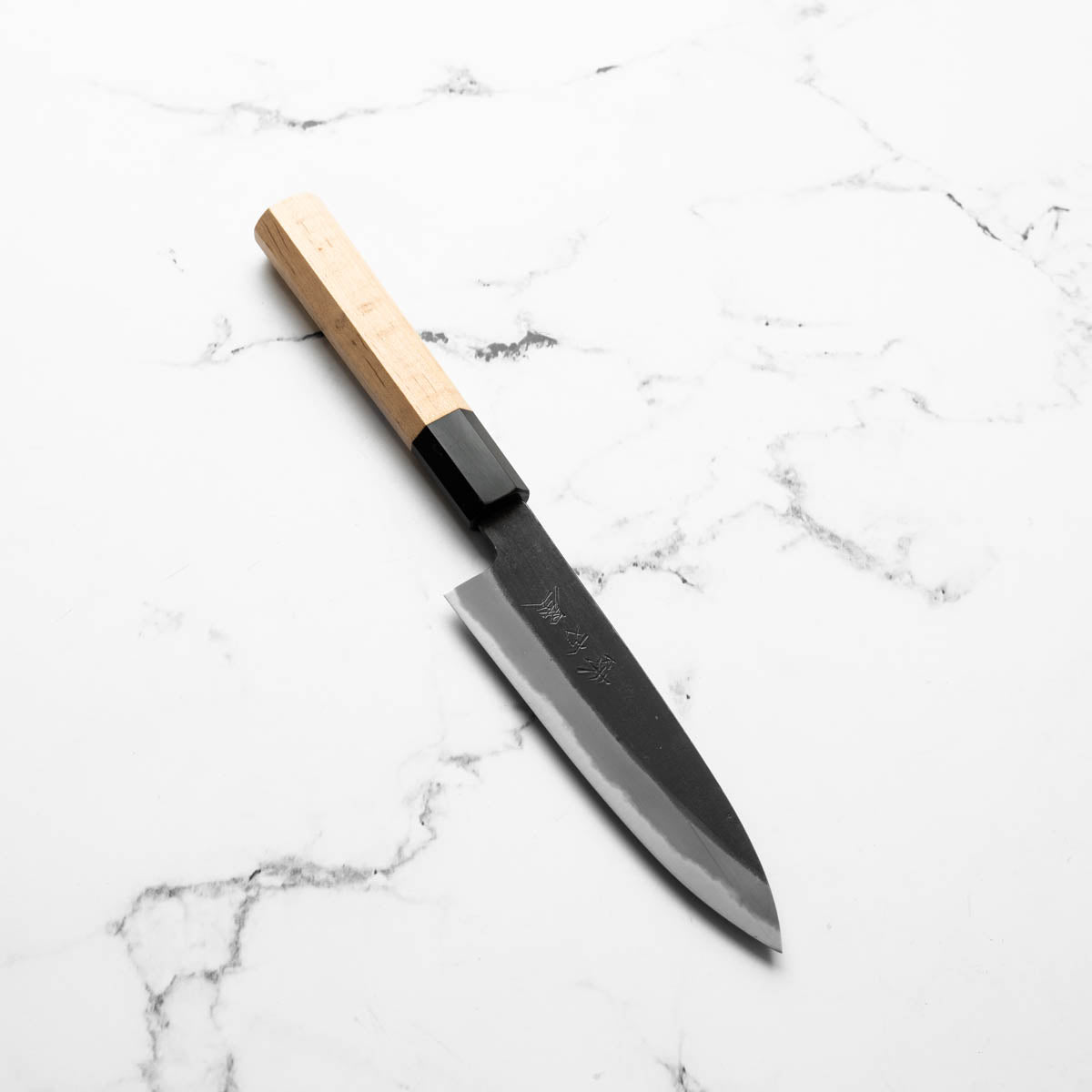 The Petty knife, a quintessential tool in Japanese cuisine, is a smaller utility knife used for precise, delicate tasks. Often considered a smaller sibling to the chef's knife, it excels in hand-held tasks like peeling, trimming, and intricate cutting. Its versatility makes it an essential for detailed culinary work.