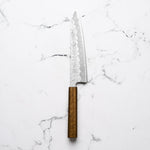 The Gyuto is the do-it-all, general purpose chef's knife. If you are looking for an all-rounder that can handle daily veg and protein prep and portioning, this is the one! A 210mm edge length is the most common, but try a 240mm if you prefer larger knives.