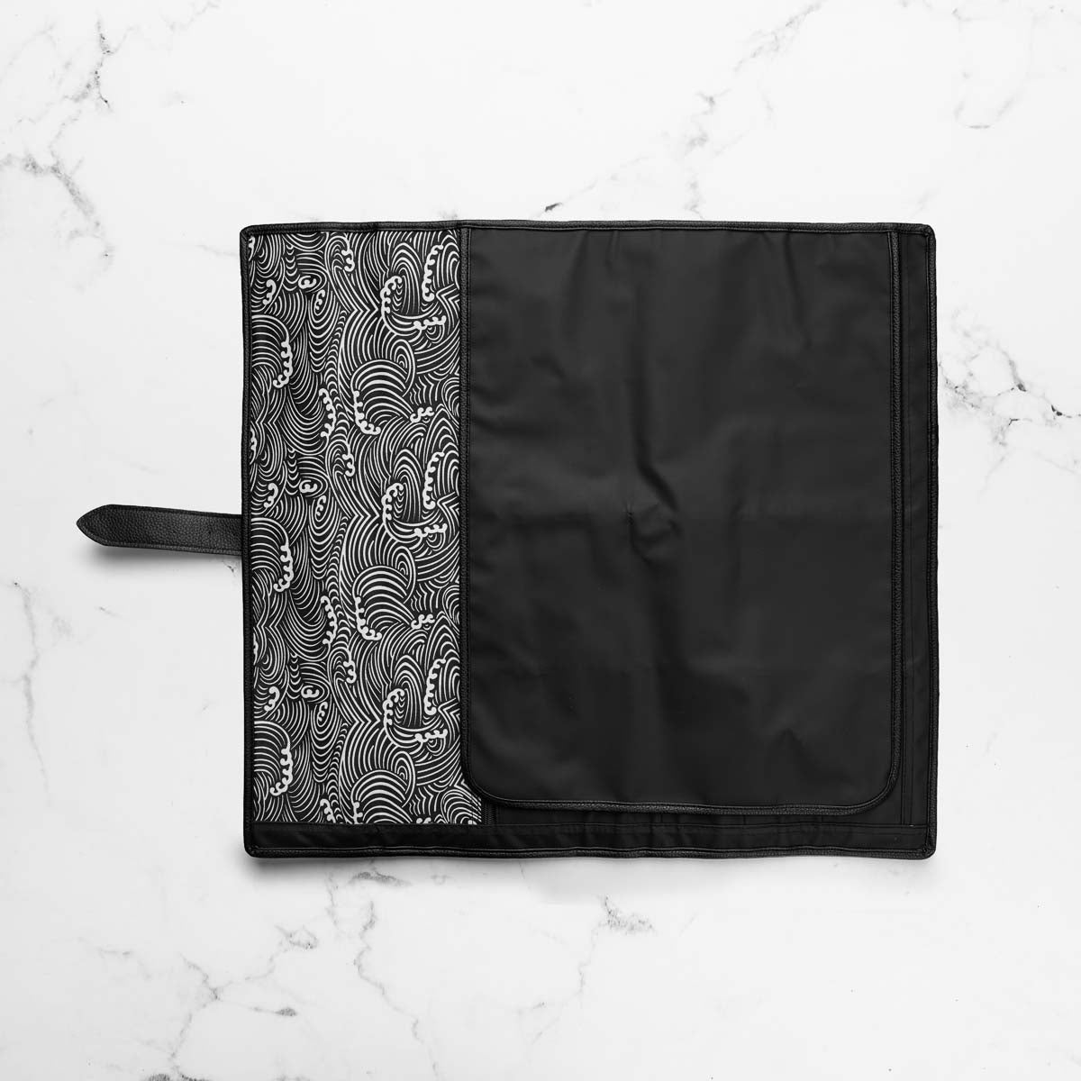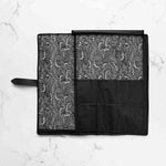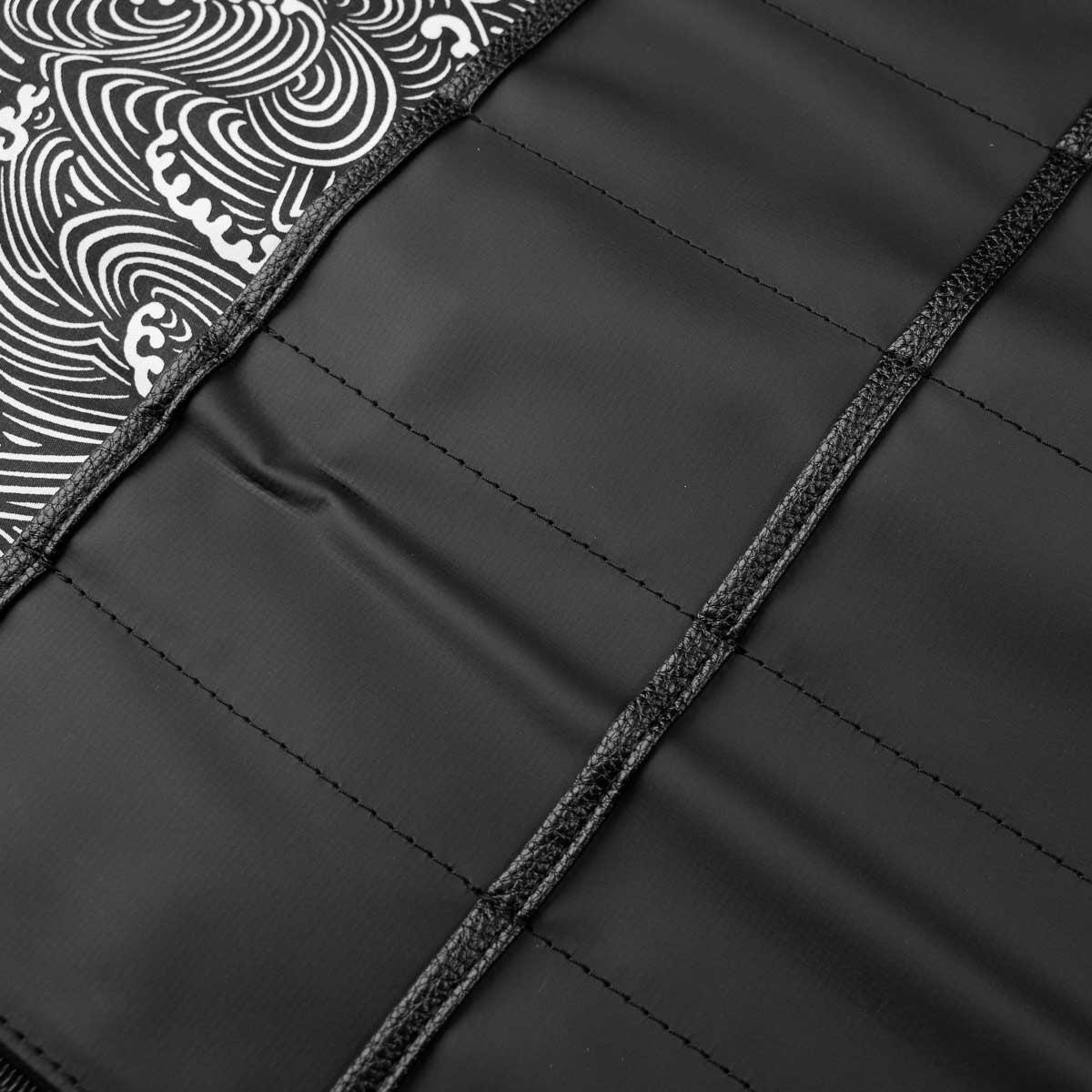 Elevate your culinary travels with the assured protection of the 5 Pocket 1000D PVC Chef Knife Bag. This fundamental bag is meticulously crafted for both accomplished chefs and emerging culinary talents, showcasing a streamlined roll-up design paired with five dedicated knife pockets. This version is lined with a beautiful grey and white Hokusai inspired wave pattern.