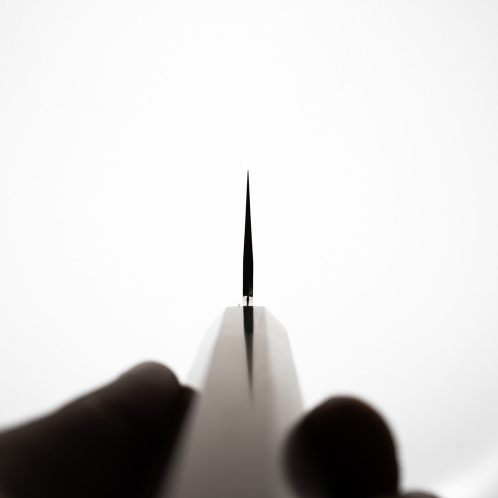 Japanese Ginsan steel, also known as Silver-3 or G3, is an underrated high-grade semi-stainless steel loved by many for being in the ‘goldilocks zone’ of knife steels. It holds a very respectable edge, but is effortless to sharpen. It is considered the semi-stainless version of White 2. It is the knife steel of choice for many home cooks and professional chefs alike.