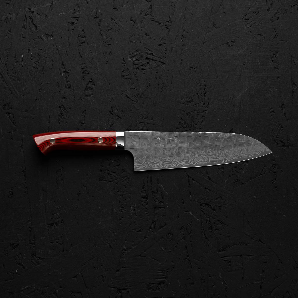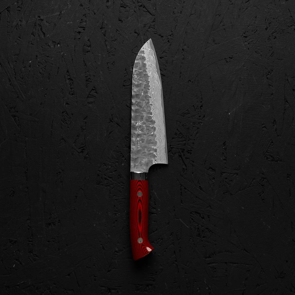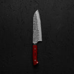 Takeshi Saji VG10 Forged Tsuchime Santoku - Red Weave
