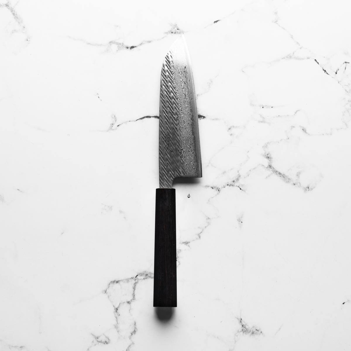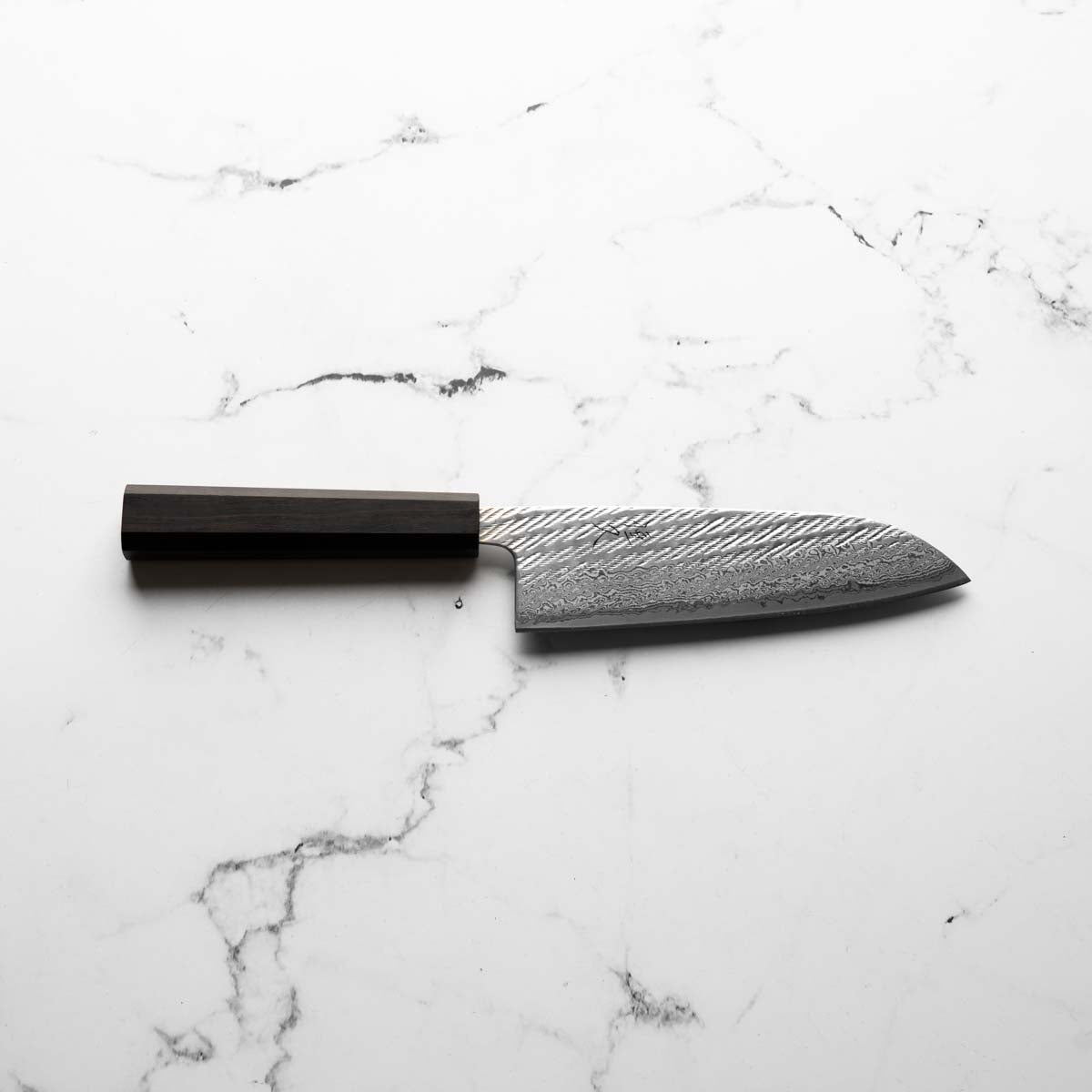 Tsunehisa AUS-10 Nawame Tsuchime Santoku 165mm - Ebony