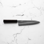 One of their most celebrated offerings is the SKD steel series — featuring a semi-stainless high-carbon core clad in stainless steel. The blades showcase a distinctive wide-bevel grind with a shallow hammer texture that sits stylistically between nashiji and kurouchi finishes. Paired with traditional burnt chestnut handles, each knife reflects Yoshikane’s dedication to consistency, craftsmanship, and timeless design.