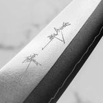 His knives are instantly recognizable for their striking Tsuchime and Suminagashi finishes, thin grinds, and use of high-performance steels such as SG2, HAP40, and stainless-clad Blue Super. Kurosaki’s Fujin series, with its dramatic wind-patterned hammer finish, helped cement his reputation as a blacksmith who blends artistry and technical brilliance in equal measure.