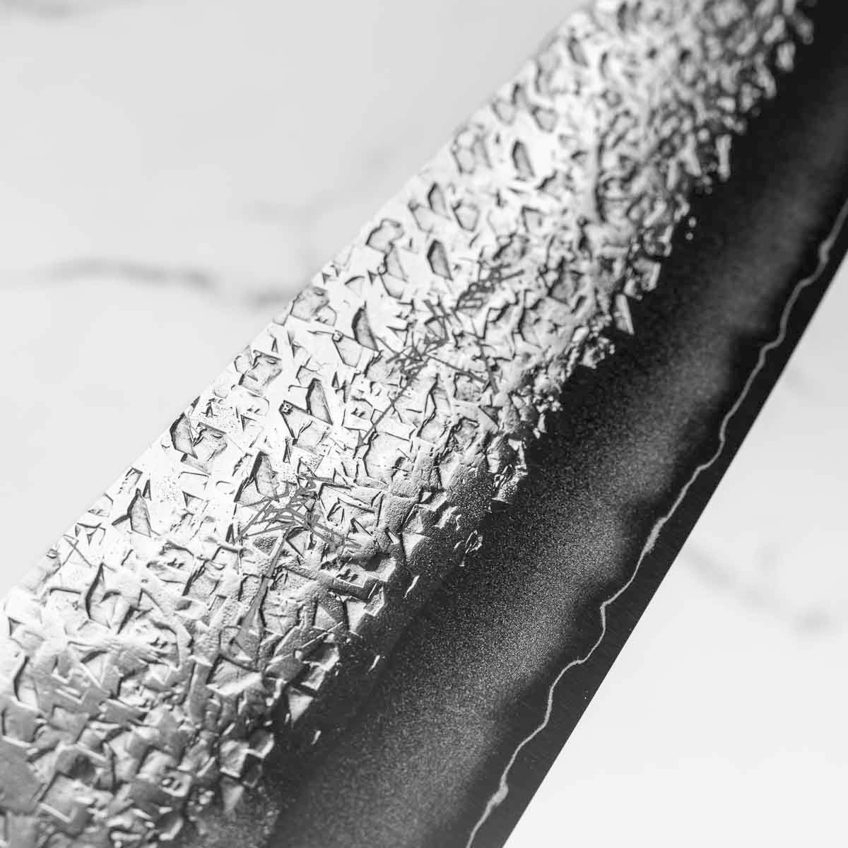 Japanese SG2, also known as R2 steel, is a high-end, powdered metallurgy stainless steel and one of the finest knife-making steels available in Japan. It is a favourite of many for its exceptional hardness and edge retention. Its fine, uniform grain structure enables razor-sharp edges, all the while holding an edge for much longer than Carbon steel knives, without needing to be concerned about rust appearing.